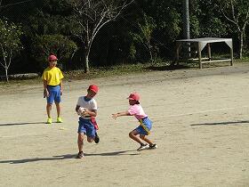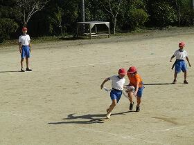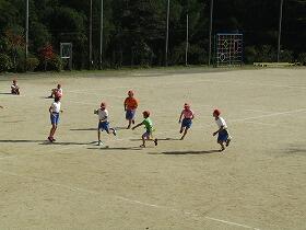 昨日から5年生が「交流草川」に行っているので、5時間目の体育は暖かい日差しの指す運動場で、3・4・6年合同で「タグラグビー」をやっていました。先生からルールやポイントを教わり、歓声を上げながらボールを持って走り回っていました。