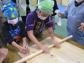 そば打ち体験では、講師や保護者の方々に手順を教えていただきながら活動をし、そばを打った後、全員で試食を行いました。自分たちで栽培したそばの味は格別のようでした。子どもたちは、これまでの活動を思い出しながら、おいしくそばをいただいていました。