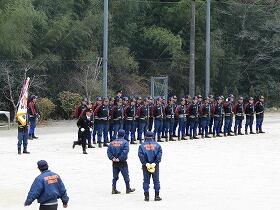 1月4日(木)今年の仕事始めです。運動場では1月6日の「椎葉村消防出初め式」に向けた尾向小校区の第10部、第11部の練習が行われています。冷えた空気の中に、きびきびとした号令の声が響き、キレイにそろった整列と足音に、身が引き締まる思いがします。