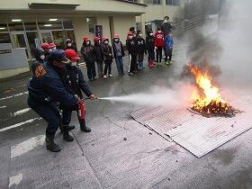 1月10日(水)火災想定避難訓練を実施しました。地元の消防団第10部の方々3名を講師にお招きして、尾向地区に起こりうる様々な災害を想定した避難の仕方のお話や、消火器やジェットシューターによる消火訓練等、大変有意義な訓練となりました。