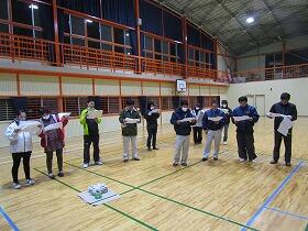 12月も山の上には雪が積もっていることはありましたが、学校周辺では今シーズン初めて雪が積もりました。運動場は真っ白の雪で覆われ、周りの山々も雪景色です。尾向にも本格的な雪の季節がやってきました。しかし、この雪の中でも消防団の皆さんは、朝早くから明日の出初め式に向けての練習のために運動場に集まっておられました。ご苦労様です。