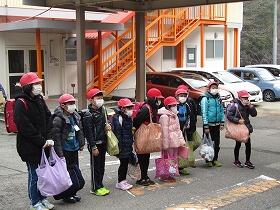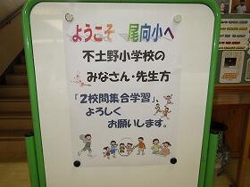 今日から2日間毎年恒例の不土野小との「2校間集合学習」が始まりました。朝早くから不土野小の10名の子ども達と5名の先生方が尾向小にやって来ました。