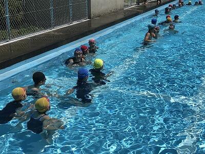 校長の話のあと、体育主任から、水泳の授業で守ってほしい2つの約束についてのお話がありました。一つは「大切な命を守りましょう!」、 もう一つは「泳ぎの技能を高めましょう!」というお話でした。水泳は水の事故が特に心配されます。決してふざけずに、先生の指示にしっかり従うことが大切です。5.6年生は、7月下旬に村小体連水泳大会が計画されています。大会へ向けて、昨年より1m、1秒でも上達できるように頑張りましょう。