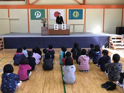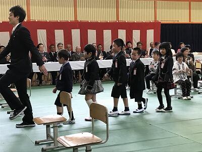 教育長職務代理者 尾前賢了様をはじめ、多数のご来賓の皆様が見守られる中、5名の新入学児童を迎え、無事入学式を行うことができました。