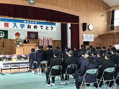真新しい制服に身を包み、68名の来賓と、椎葉中の在校生、先生方、保護者に見守られる中、無事終了しました。