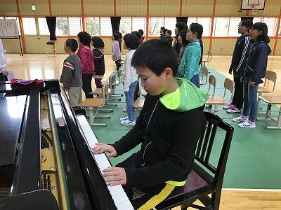 明日11日、平成最後の尾向小学校入学式が行われます。今日の午前中にリハーサルを行いました。尾向小学校新入学児童は5名です。