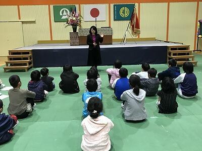 【全校帰りの会の様子】↓ ※養護教諭の先生からお話ししていただきました!
