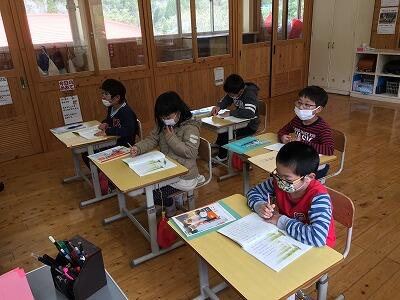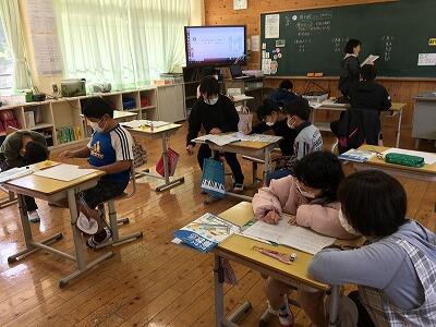 気持ちよい春の陽気の中で子どもたちが学習に励んでいます。1年生は音楽でリズム遊び、2年生は国語で物語文、3年生は理科で春の生き物、4年生は国語で作文、5年生は算数で小数、6年生は算数で線対称の学習をしていました。みんな目を輝かせ生き生きと学習に取り組んでいました。子どもたちと先生方の気持ちが通じ合っている授業ばかりでした。