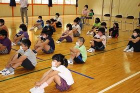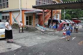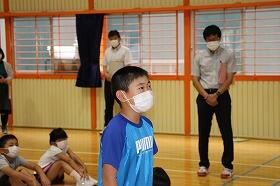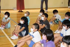 29日(月)に不審者対応避難訓練を行いました。玄関から入ってくる不審者を子どもたちのいる2・3階教室に上がらせないために、男性職員を中心に対応しました。その間、子どもたちは教室の鍵を閉めて待機しました。不審者を取り押さえた後、体育館で椎葉駐在所の警察官から不審者対応について具体的な話がありました。学校の危機管理についても今後改善していきたいと思います。