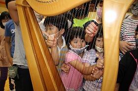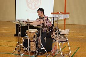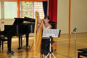 15日(月)の午後、スクールコンサートを実施しました。本の朗読の横山美和さん、ピアノとハープ演奏の古賀鈴子さん、パーカッション演奏の谷口潤実さんを迎え、「おはなしとおんがくの森」と題し、およそ2時間たっぷりと朗読と音楽の楽しさに触れました。最後には楽器に触れる体験もでき楽しい時間を過ごすことができました。