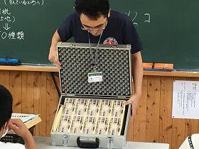社会科で税金について学習しました。講師は椎葉村役場税務住民課の椎葉康太郎さんと松村雄太さんです。税金の種類や全体の消費税の額などを学習した後、お札の見本を使って実際の1億円の重さを学習しました。お家の人が納めている税金が国民のために使われていることを学ぶいい機会となりました。