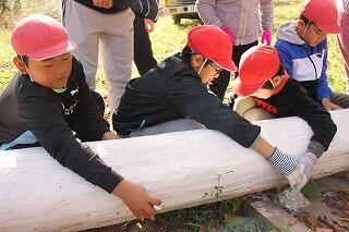 今年はブランコを作ることになり、夏休みには材料となる丸太の加工をしていました。