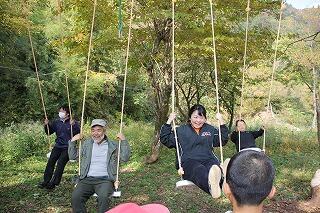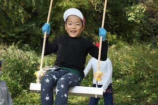 ↑ 遂に完成! 尾向小と一日出さんがコラボした特製ブランコ。拍手!