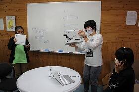 村内の小学校では、複式指導充実のためにリモート授業を実施しています。今日は5・6年生の算数の授業でした。5年生の授業は大河内小学校の先生、6年生の授業は松尾小学校の先生が画面の向こうから指導しました。カメラや音声の機器も充実し、画面の中の先生がすぐ近くにいるような感じでした。担任の小雪先生も個別に指導にあたりました。今後はタブレットも新しくなる予定で、今以上の環境で授業が充実しそうです。