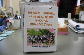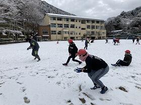 12日(火)の朝は野山一面雪化粧でした。運動場にも雪が積もっていて、全校児童で雪遊びをしました。寒い中でも子どもたちは元気です。雪合戦をしたり雪だるまを作ったり、久しぶりの積雪を楽しんでいました。厳しい寒さにも負けない元気な尾向っ子です。