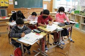 村内の小学校では、複式指導充実のためにリモート授業を実施しています。今日は5・6年生の算数の授業でした。5年生の授業は大河内小学校の先生、6年生の授業は松尾小学校の先生が画面の向こうから指導しました。カメラや音声の機器も充実し、画面の中の先生がすぐ近くにいるような感じでした。担任の小雪先生も個別に指導にあたりました。今後はタブレットも新しくなる予定で、今以上の環境で授業が充実しそうです。