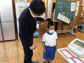 本年度から身体計測・視力検査は学級の時間(昼休み後の15分間)に実施しています。今日は、その最終日、1・2年生の検査でした。先生の指示を守り、おしゃべりをすることもなく、きちんと並んで検査を受けることができました。素晴らしいです。2年生も1年生のお手本として取り組んでくれました。