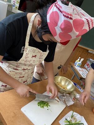 今回は、「ごはんとみそ汁」です。ふだんからお手伝いをしている子が多いようで、慣れた手つきで調理する様子が見られました。料理は「自立」の第一歩ですね。
