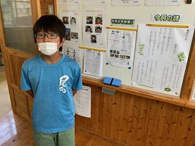 先月の詩に比べると難しいのですが、子どもたちは登校時や朝の会の時に果敢に挑戦しています。