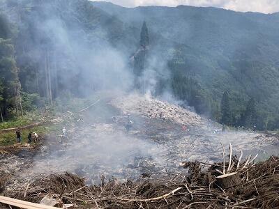 火はみるみる燃え広がり、約2反の土地を2時間ほどで焼き上げました。火や煙が上がる勇壮な姿は見応えじゅうぶんでした。この大がかりな活動が34年も続いていることに、伝統の重みや素晴らしさを感じました。