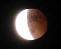 校長住宅から写真を撮りましたので紹介します(月が見え始めたのが午後7時半頃です。欠けていく状態が撮影できなかったのがとても残念でした)。
