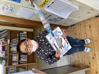 図工がある日(特に工作で家から材料を持ってくる日)は、朝からわくわくしているようです。私(校長)もそうだったので、気持ちがよく分かります。