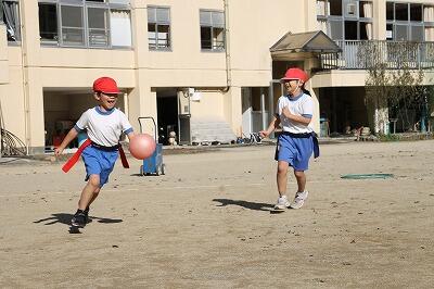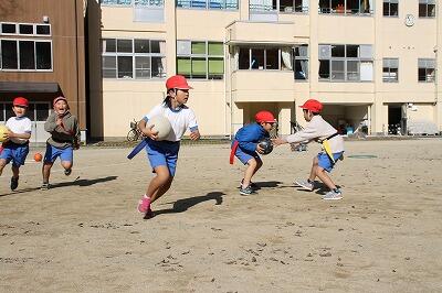 そんな寒さにも負けず、子どもたちは元気いっぱいです。16日(金)には、1・2年生が体育で運動場を走り回っていました。腰に付けたタグを取られないようにボールを運ぶルールで、上学年で取り扱うタグラグビーにつながるゲームです。3人1組のチームで、攻める側と守る側に分かれて勝負しました。作戦を立てながら一生懸命取り組む姿がほほえましくたくましく感じました。