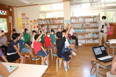 1日目の昨日は、国語や体育(水泳)、外国語や道徳などを他の小学校の子どもたちと一緒に学習しました。いつもは複式学級で5・6年生が一緒に学習していますが、集合学習では自分と同じ学年の子どもたちと学習します。