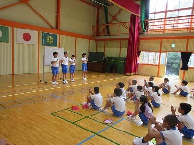 9月3日に結団式が行われ、団の色決定や団長・副団長の挨拶、スローガンの発表などがありました。今日、5日は全校体育で、行進の練習や、徒競走、ダンスの練習などを行いました。まだまだ日差しが強く、汗がたくさん出るので、休憩を入れたり、場所を体育館にしたりしながら、練習に取り組んでいます。