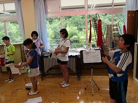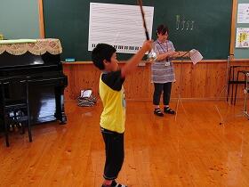 今日の全校音楽は鼓笛の練習でした。前回に引き続き椎葉中学校の音楽の先生に来ていただき指導してもらいました。自分たちで練習してきたことを見てもらい、細かいところを直してもらいました。大変蒸し暑い中でしたが、子ども達は真剣な眼差しで指導を受けていました。