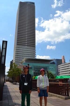 ・ 大会終了後、帰りの飛行機に乗るまでに時間がありましたので、岐阜駅前の43階建てのビルの最上階に上りました。岐阜市内が広く見渡せ、二名の子ども達もとても喜んでいました。