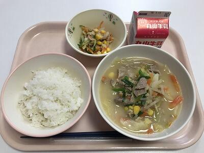 今日の給食は、減量麦ご飯、味噌ラーメン、ツナサラダ、牛乳でした。