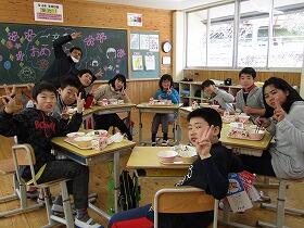 明日は卒業式。6年生にとって今日が小学校最後の給食となりました。この給食のお陰で体も大きく強くなりました。3人の6年生は味わいながら食べていました。
