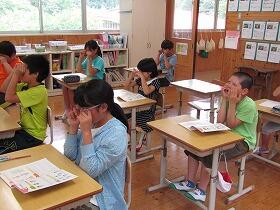昨日から2日間、高学年は椎葉小での集合学習でした。のぞいてみると、いつものとは違う同学年の大人数の中で、尾向小の子ども達は他の学校の子ども達と協力しながらしっかりと学習に取り組んでいました。