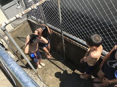5月27日のプール清掃から2週間、昨日の3校時にプール開きを実施しました。