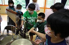 15日(月)の午後、スクールコンサートを実施しました。本の朗読の横山美和さん、ピアノとハープ演奏の古賀鈴子さん、パーカッション演奏の谷口潤実さんを迎え、「おはなしとおんがくの森」と題し、およそ2時間たっぷりと朗読と音楽の楽しさに触れました。最後には楽器に触れる体験もでき楽しい時間を過ごすことができました。