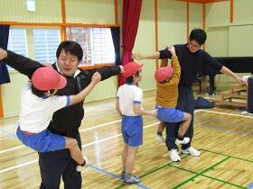 日頃様々な行事でお世話になっている青年団のみなさんですが、今日は忙しい仕事を休んで3人の青年のみなさんが来てくださいました。「○○兄ちゃ-ん」と呼びながら、子ども達は実に楽しそうに目一杯体を動かしていました。子ども達と地区の青年との距離がこんなにも近いのも尾向らしいところだなあと改めて感心しました。