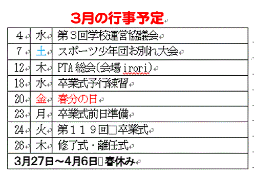 6年生は卒業へ、1~5年生は学年の修了へ。子どもたちの心の中にも、力強い希望の芽が顔を出すのを願う3月です。