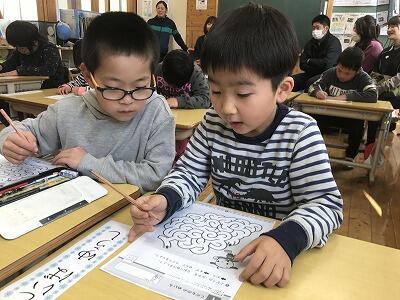 今日は午後から4月に入学する、子どもたちと保護者の皆様が、「新入学児童保護者説明会」に来校されました。校長の話のあと、1・2年生の教室に移動し、1・2年生と一緒に交流授業に参加しました。少し緊張していましたが、元気に発表したり、お絵かきを楽しんだりしていました。4月10日の入学式が今から楽しみです。