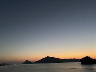 水面に太陽の日差しがキラキラ輝く風景を見ながら
