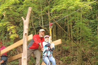 梅ちぎりが終わったら、尾前一日出さんが建てられている「ツリーハウス」にお邪魔して、長さ80mのジップラインや、ハンモック等体験させていただき、楽しい時間を過ごすことができました。