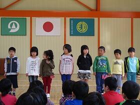 青い空の下、新緑の山々に囲まれて、今日は不土野小学校との2校間集合学習「春の遠足」でした。体育館での1年生歓迎会の後、尾向地区でのウォークラリーや運動場での陣取りなどをして、子ども達は交流を深めることができました。
