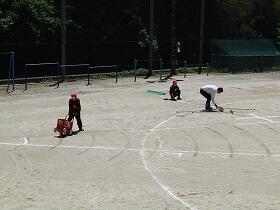 そんな中、5・6年生は体力テストに向けてラインを引いたり走路をならしたりしながら会場作りを一生懸命にしていました。