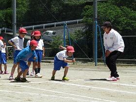 1・2年生は、5・6年生が引いてくれたコースで元気にかけっこの練習をしていました。