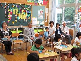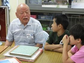 今日は年に一度の「世代間交流学習」でした。あいにくの雨模様でしたが今年もたくさんの地区の高齢者の方々に来ていただき、授業参観の後、昔の遊びや昔の暮らしの話・絵描き等で交流を深めることができました。その後、子ども達と一緒に給食も食べていただき、和やかなひとときとなりました。