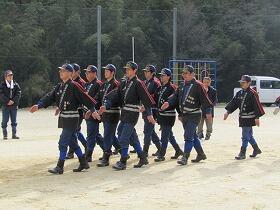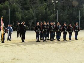 運動場では、明日の椎葉村消防団出初め式に向けて、第10部と第11部の皆様が早朝より訓練をされています。ひんやりとした空気の中、きりっとした号令の声とザッザッという靴音が響いています。