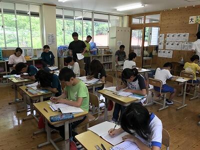 1.2年生は音楽の授業、3.4年生は体育(ハードル)の授業、5.6年生は国語の授業を真剣に受けてました。体育のハードルの授業では、ハードルの恐怖感をなくすために、色々な工夫と手立てを考えた授業が展開されていて、どの子どもたちも、楽しそうにハードルを跳んでいました。