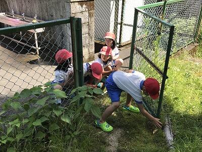 【1.2年生はプール周りの草抜きに頑張りました。】↑