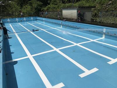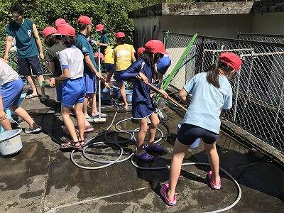 【5.6年生はプールの中の汚れを必死に落としています。】↑