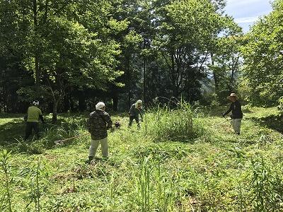 【お父さん方は、草刈り機で全ての草を刈り取ります。】↑